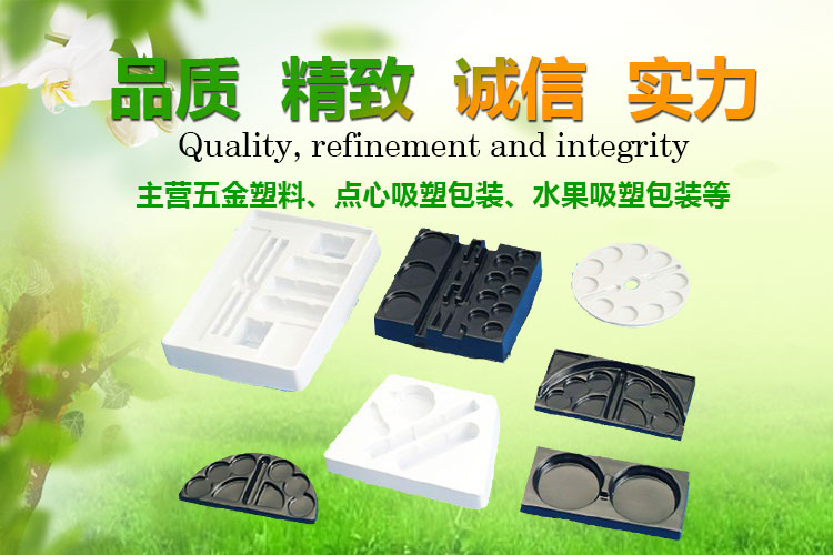 主營產(chǎn)品:電子五金吸塑、點心吸塑包裝、水果吸塑包裝、醫(yī)藥吸塑包裝、化妝品植絨吸塑